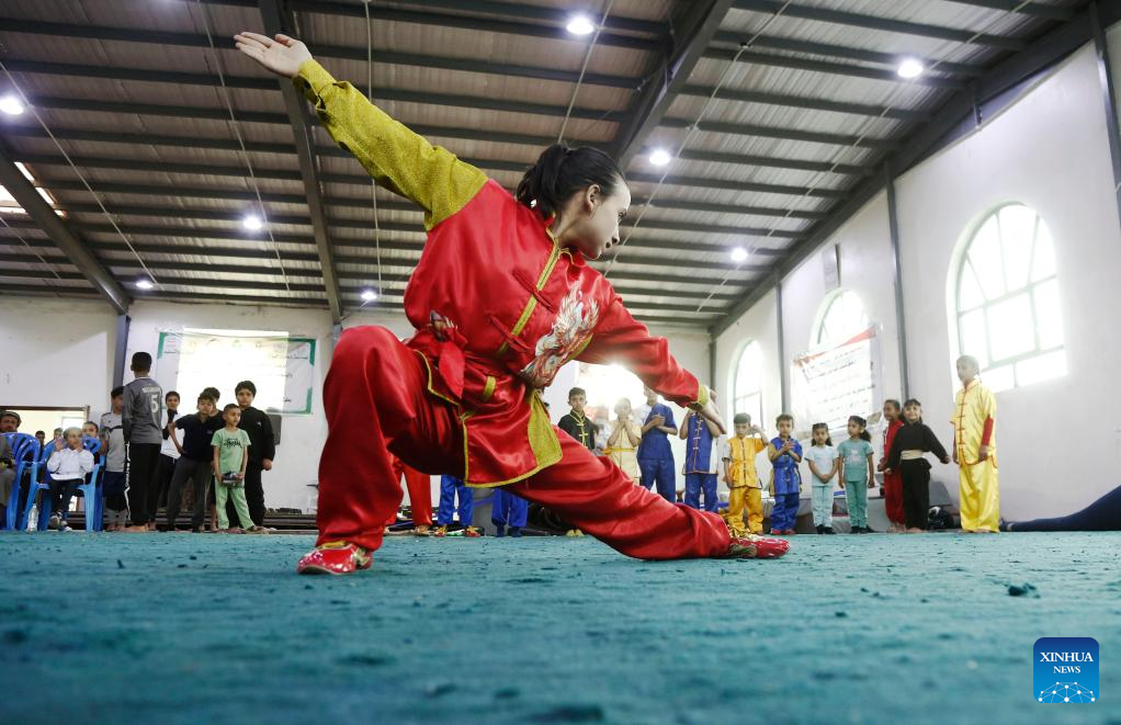 A female competitor of the junior category performs during a Wushu and Kung Fu competition in Sanaa, Yemen, on Jan. 28, 2026. (Photo by Mohammed Mohammed/Xinhua)