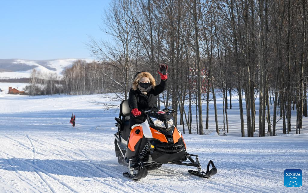 A tourist rides snow motorbike at the Phoenix Mountain scenic area in Yakeshi of Hulun Buir, north China's Inner Mongolia Autonomous Region, Jan. 21, 2026. Yakeshi has been an important base for cold-area automotive testing due to its long and freezing winter season. A large number of engineers and technicians pay regular visit for business purpose to the city during the winter, but they also become a stable client group for other services available here.