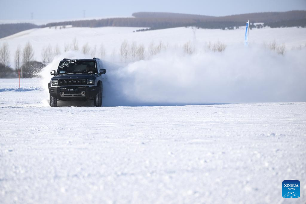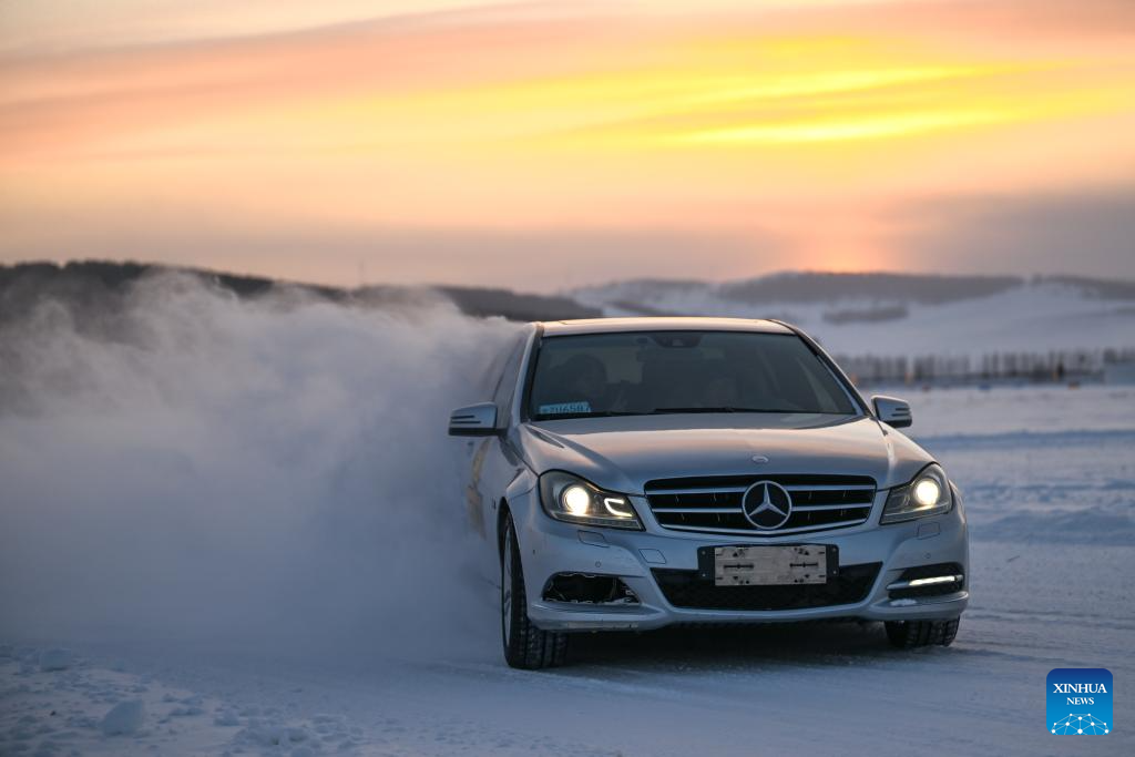 Tourists experience car drifting on an icy road at an automotive testing field in Yakeshi of Hulun Buir, north China's Inner Mongolia Autonomous Region, Jan. 20, 2026. Yakeshi has been an important base for cold-area automotive testing due to its long and freezing winter season. A large number of engineers and technicians pay regular visit for business purpose to the city during the winter, but they also become a stable client group for other services available here.