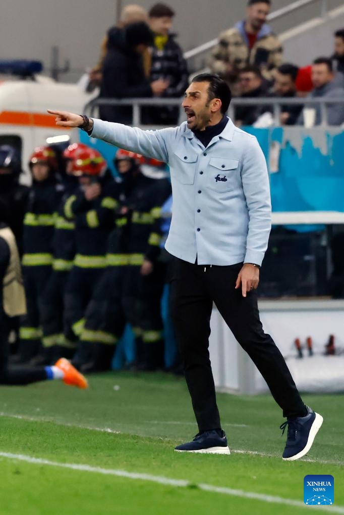 FCSB's coach Elias Charalambous gestures during the UEFA Europa League football match between Fenerbahce and FCSB at Arena Nationala stadium in Bucharest, Romania, Jan. 29, 2026. (Photo by Cristian Cristel/Xinhua)