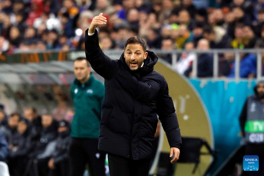 Fenerbahce's coach Domenico Tedesco gesture during the UEFA Europa League football match between Fenerbahce and FCSB at Arena Nationala stadium in Bucharest, Romania, Jan. 29, 2026. (Photo by Cristian Cristel/Xinhua)