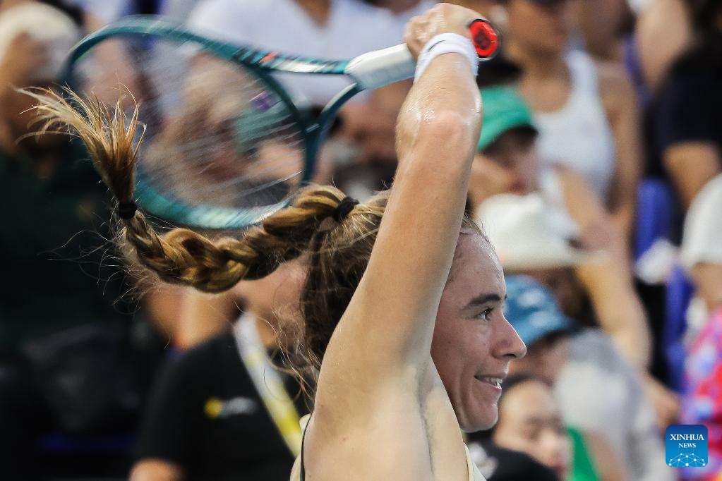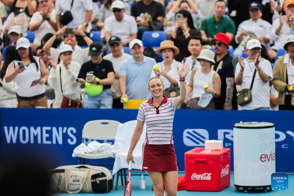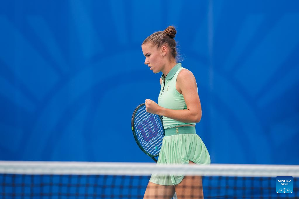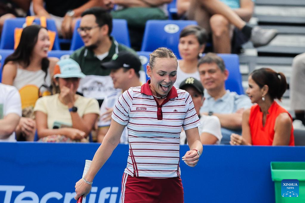 Donna Vekic of Croatia celebrates after winning the women's singles semifinal match between Donna Vekic of Croatia and Tatiana Prozorova of Russia at the WTA Philippine Women's Open in Manila, the Philippines, Jan. 30, 2026. (Xinhua/Rouelle Umali)