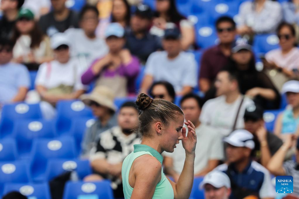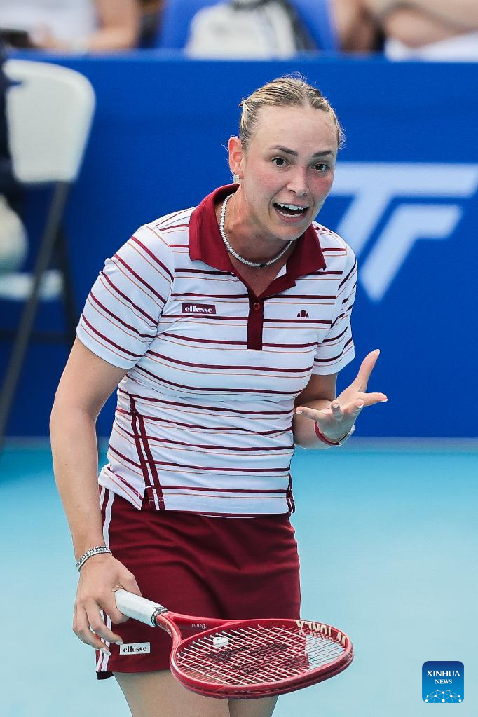 Donna Vekic of Croatia reacts during the women's singles semifinal match between Donna Vekic of Croatia and Tatiana Prozorova of Russia at the WTA Philippine Women's Open in Manila, the Philippines, Jan. 30, 2026. (Xinhua/Rouelle Umali)