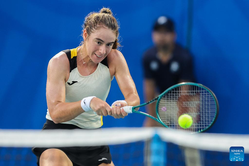 Solana Sierra hits a return during the women's singles semifinal match between Camila Osorio of Colombia and Solana Sierra of Argentina at the WTA Philippine Women's Open in Manila, the Philippines, Jan. 30, 2026. (Xinhua/Rouelle Umali)