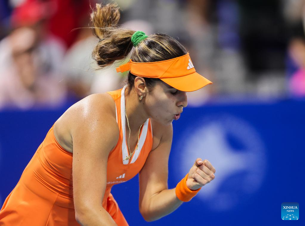 Camila Osorio celebrates scoring during the women's singles semifinal match between Camila Osorio of Colombia and Solana Sierra of Argentina at the WTA Philippine Women's Open in Manila, the Philippines, Jan. 30, 2026. (Xinhua/Rouelle Umali)