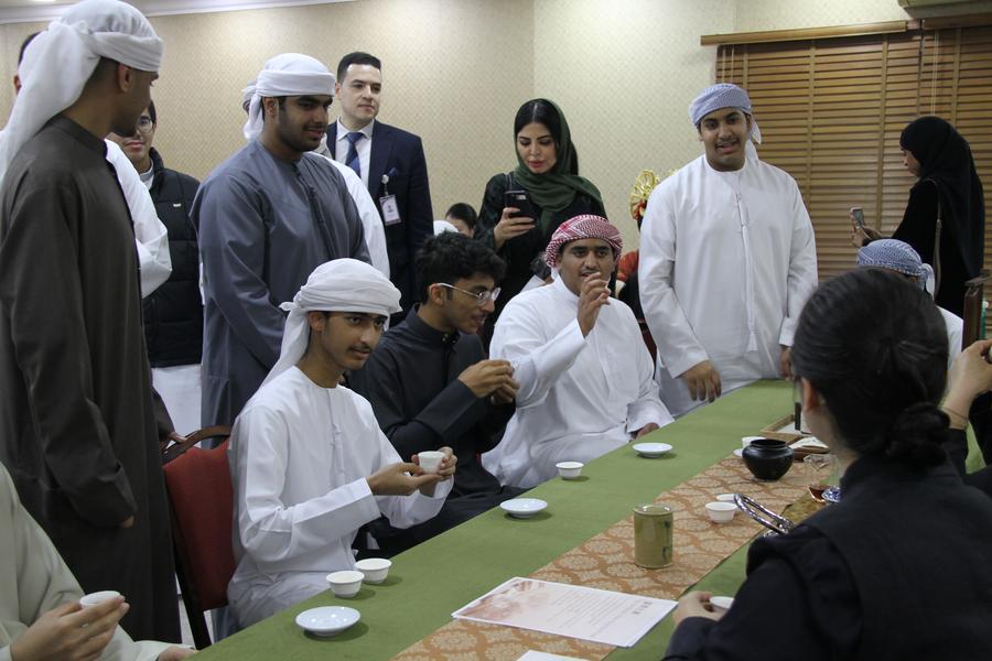 At Fujairah University, Fares Feras Nehlawi donned a black Hanfu (a traditional Chinese clothing) embroidered with red cloud patterns and performed a traditional tea ritual with elegant precision. He lifted the cup, inhaled its rich aroma and took a gentle sip, savoring a moment that felt centuries old. Nearby, students tried their hand at Chinese painting, paper-cutting, lacquer fan crafting, eager to share their creations with friends.