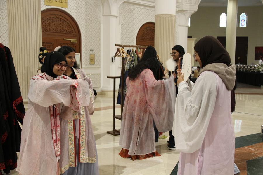During the event held in the hall of its main building at the American University of Sharjah on Thursday, international students tried on traditional Chinese and Sharjah attire and engaged in hands-on arts and crafts.