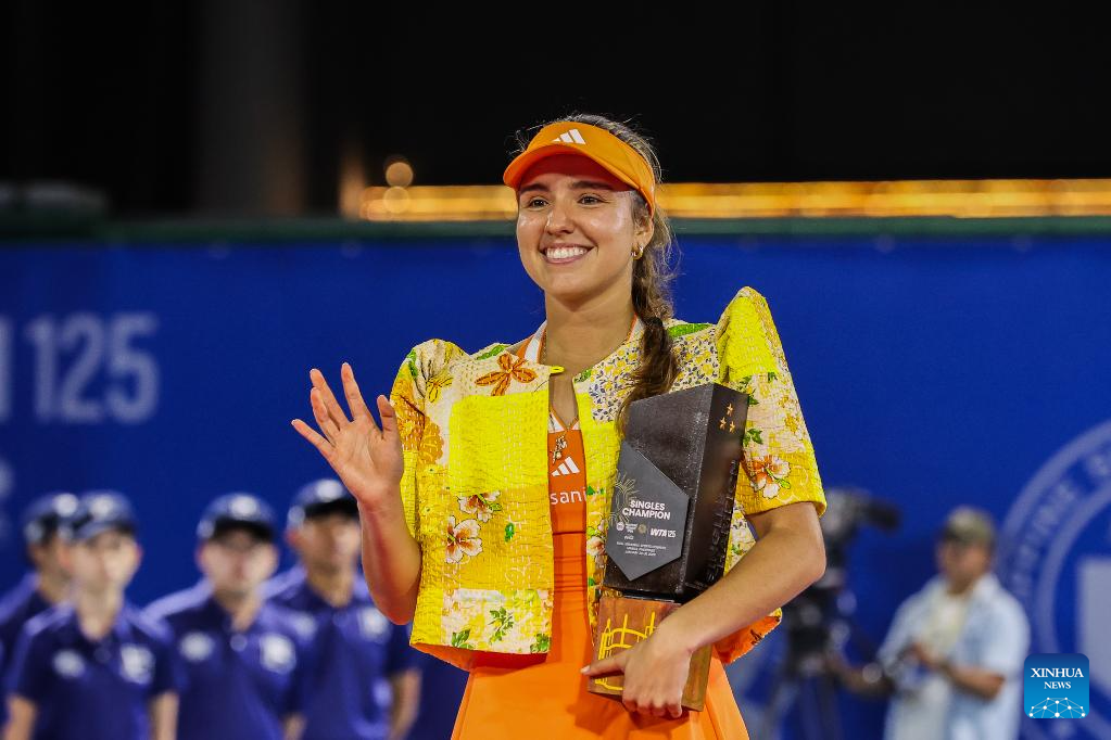 Camila Osorio of Colombia holds the champion's trophy during the awarding ceremony for the women's singles at the WTA Philippine Women's Open in Manila, the Philippines, Jan. 31, 2026. (Xinhua/Rouelle Umali)