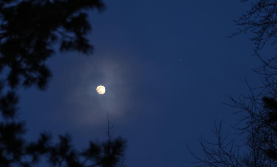 This photo taken on Jan. 31, 2026 shows a conjunction of Jupiter and the waxing gibbous moon over the sky of Fujin City, northeast China's Heilongjiang Province. (Photo by Qu Yubao/Xinhua)
