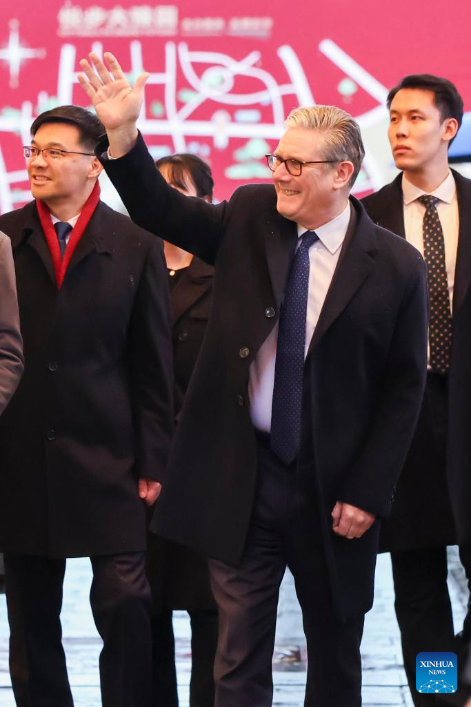 British Prime Minister Keir Starmer waves during a visit to Yuyuan Garden in Shanghai, east China, Jan. 30, 2026. (Xinhua/Wang Xiang)