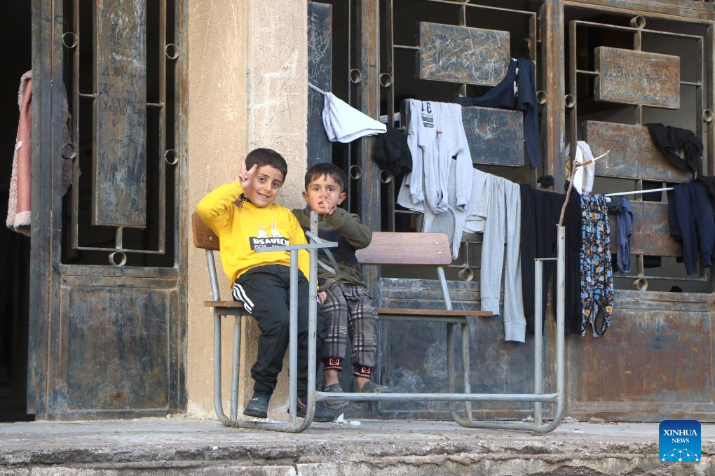 Displaced children play in the courtyard of a school shelter in Hasakah province, northeastern Syria, Jan. 29, 2026. (Str/Xinhua)