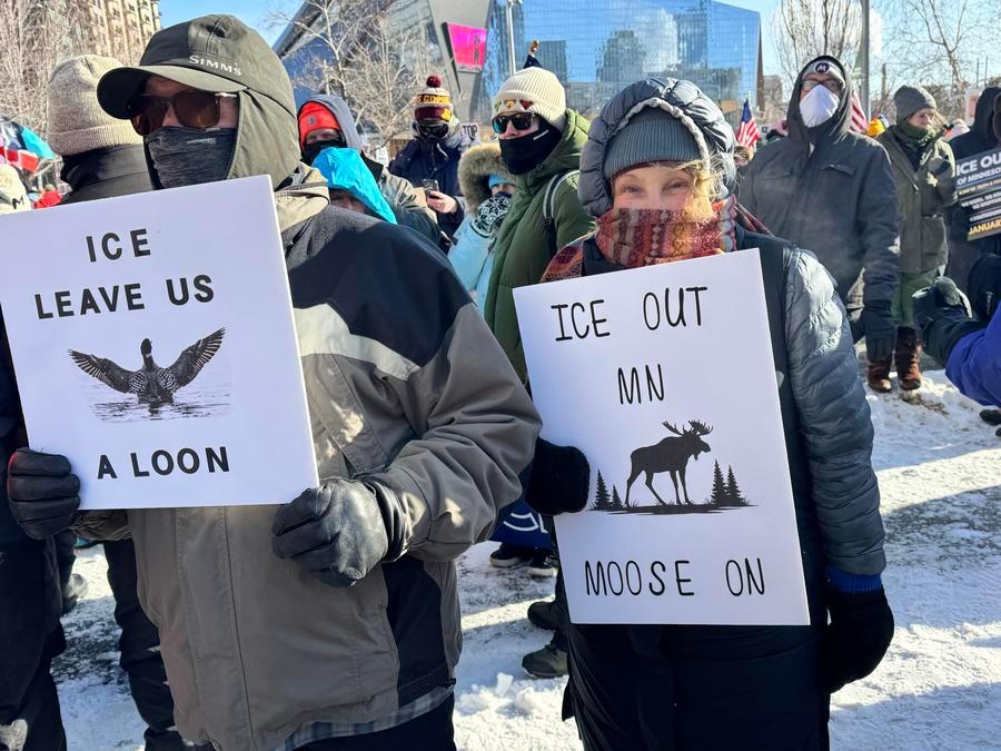 Rachel Elder, who attended a protest with her son, told Xinhua she was demonstrating against what she described as unlawful violence by ICE agents. "I'm here with my son because we are protesting the occupation of ICE and the unlawful violence, murder that the agents have committed against innocent protesters," she said.