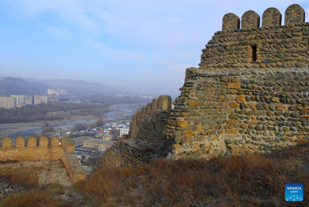 This photo taken on Jan. 30, 2026 shows a view from Gori Fortress in Gori, Georgia. Inscribed on Georgia's Immovable Cultural Monuments of National Significance List, Gori Fortress is an important historic site located on a rocky hill in the city of Gori. The castle was originally built in the 6th-7th centuries, took its current form by the 18th century, and was severely damaged by an earthquake in 1920. (Xinhua/Chen Junfeng)