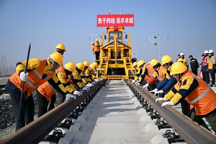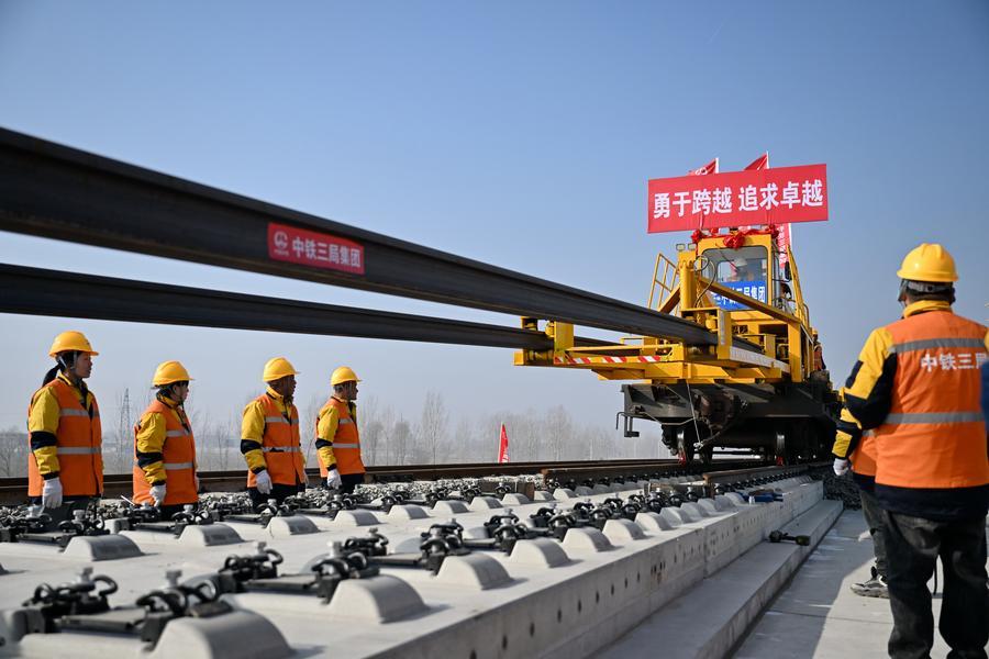 SHIJIAZHUANG, Feb. 1(Xinhua) -- Track-laying operation of the Xiong'an-Xinzhou high-speed railway officially kicked off on Sunday.