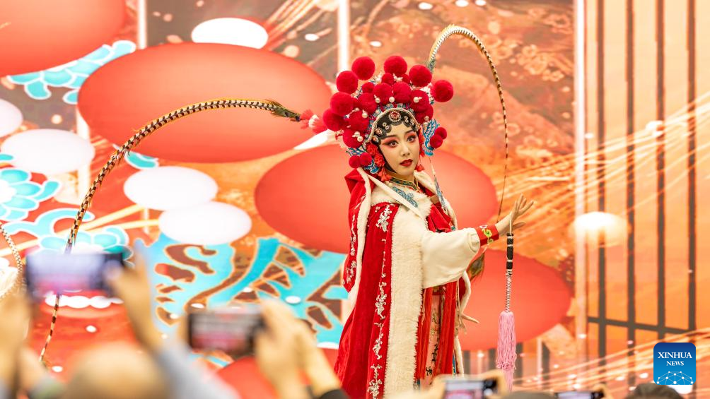 An artist stages a Sichuan Opera performance at the Chinese Cultural Center in Belgrade, Serbia, Jan. 30, 2026. An immersive music and opera gala at the Chinese Cultural Center in Belgrade drew hundreds of attendees on Friday evening, marking the launch of the 2026 Chinese New Year celebrations in Serbia. (Photo by Wang Wei/Xinhua)