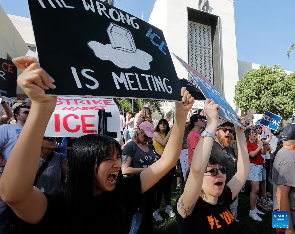 People attend a rally against federal immigration enforcement operations and the recent fatal shootings by immigration agents in front of the Burbank City Hall, in Burbank, the United States, Jan. 30, 2026. (Xinhua)