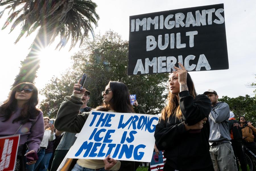 "I am here because of the brutal ICE violence in our cities and because we want to stand up for what's right in our country, and we don't want to stay silent," a protester who identified herself as Ari told Xinhua.