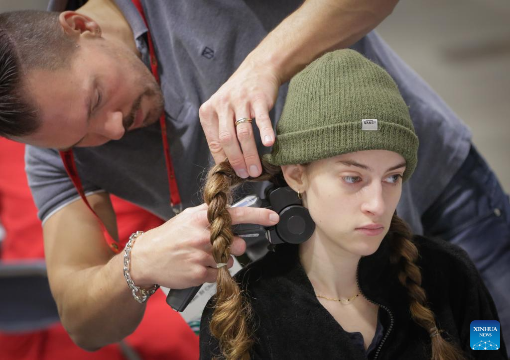An exhibitor performs a nervous system test on a woman using an electromyography scanner at the 2026 Wellness Show at the Vancouver Convention Centre in Vancouver, British Columbia, Canada, on Jan. 31, 2026. The two-day event kicked off here on Saturday, with exhibitors showcasing their latest products and ideas in nutrition and fitness, as well as promoting physical and mental health. (Photo by Liang Sen/Xinhua)