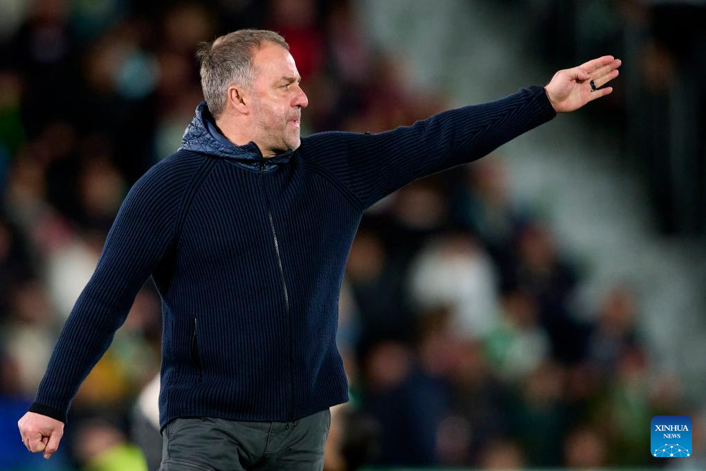 Hansi Flick, manager of Barcelona gestures during the La Liga football match between Elche and Barcelona in Elche, Spain, Jan. 31, 2026. (Stringer/Xinhua)