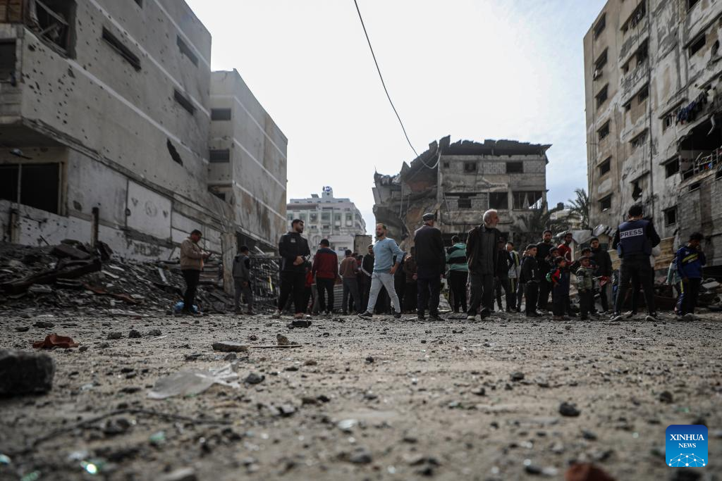 GAZA/JERUSALEM, Jan. 31 (Xinhua) -- At least 32 Palestinians were killed in a series of Israeli airstrikes across the Gaza Strip late Friday and midday Saturday, Palestinian sources said, with attacks targeting a police station, residential apartments and displacement tents.