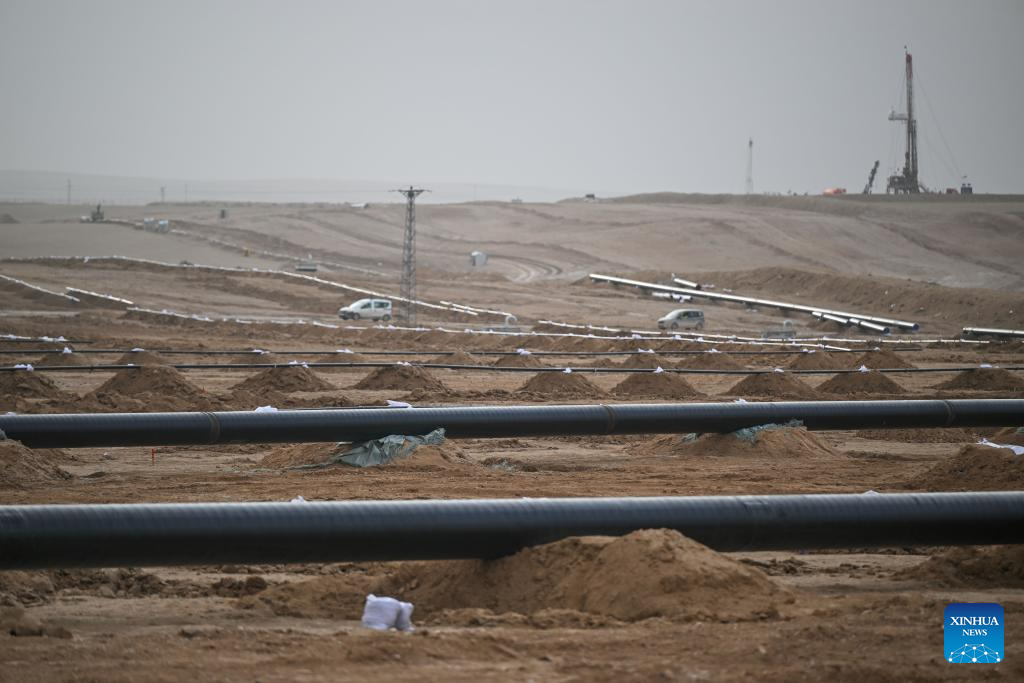 This photo taken on Jan. 30, 2026 shows the pipeline installation site of the Lake Tuz (Salt Lake) Underground Natural Gas Storage Project in Aksaray Province, Türkiye. Located in Aksaray Province, central Türkiye, the Lake Tuz (Salt Lake) Underground Natural Gas Storage Project is a key component of the country's energy infrastructure.