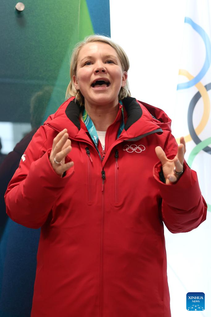 Chair of the IOC Athletes' Commission Emma Terho speaks during the Inauguration of the Olympic Truce Mural with the IOC EB and the IOC Athletes' Commission (AC) at the Olympic Village in Milan, Italy, Feb. 2, 2026. (Andreas Rentz/Pool via Xinhua)