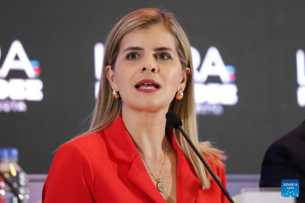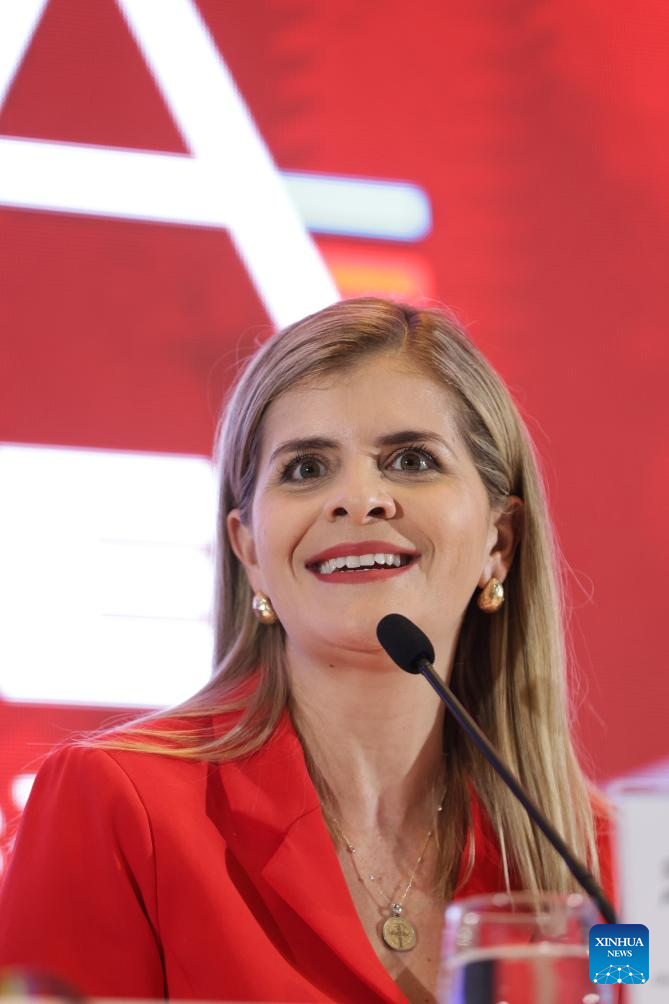 Costa Rican President-elect Laura Fernandez attends a press conference in San Jose, Costa Rica, Feb. 2, 2026. Laura Fernandez, the candidate from the ruling Sovereign People Party, on Sunday celebrated her victory in the Costa Rican presidential election after securing 48.3 percent of the vote. (Photo by Francisco Canedo/Xinhua)