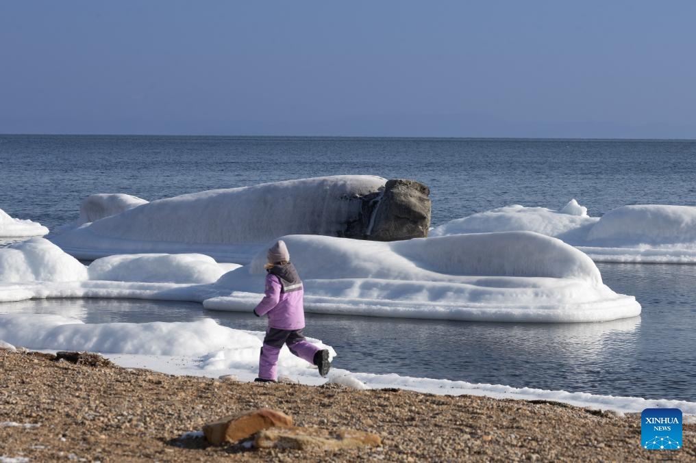 A child runs on the Sun Beach in Vladivostok, Russia, Feb. 1, 2026. Sun Beach is famous for its unique rock formations, some of which resemble animals such as seal and toad. (Photo by Andrey Matveenko/Xinhua)