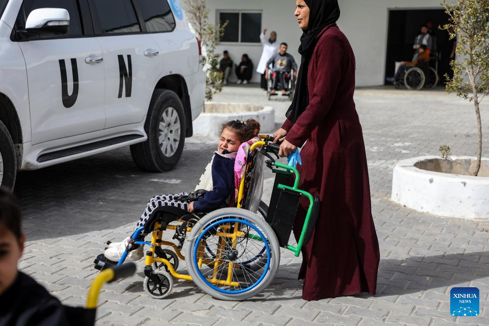 GAZA, Feb. 2 (Xinhua) -- Some Palestinian patients started moving from the city of Khan Younis toward the Rafah land crossing in southern Gaza, in preparation for their travel abroad, Palestinian medical sources said Monday.