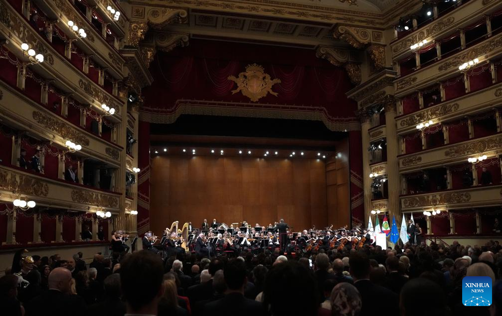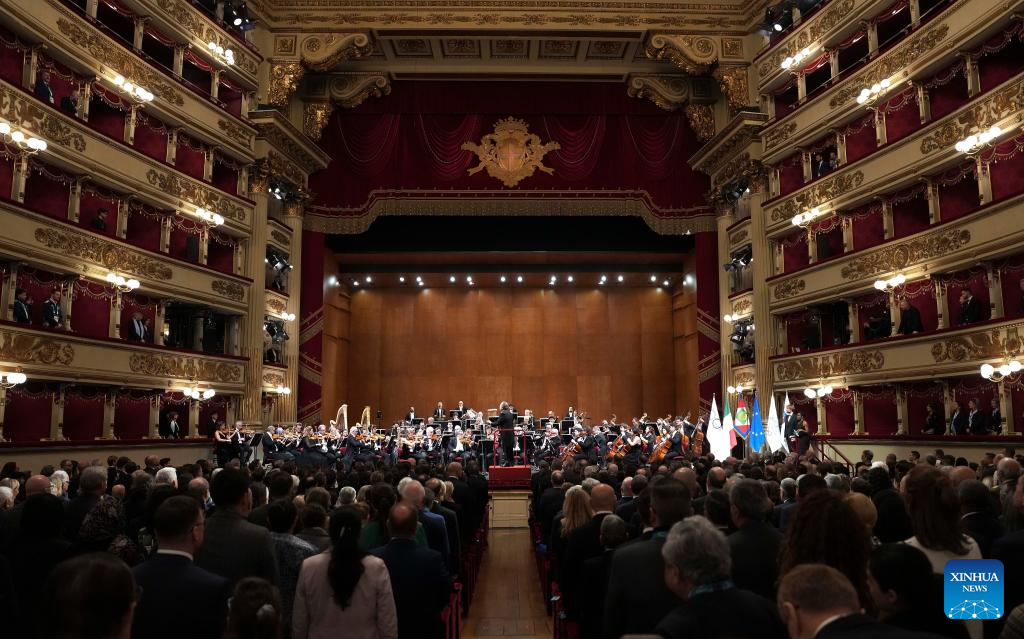 Photo taken on Feb. 2, 2026 shows a general view of the opening ceremony of the 145th IOC Session at La Scala Theatre in Milan, Italy. (Xinhua/Sun Fei)