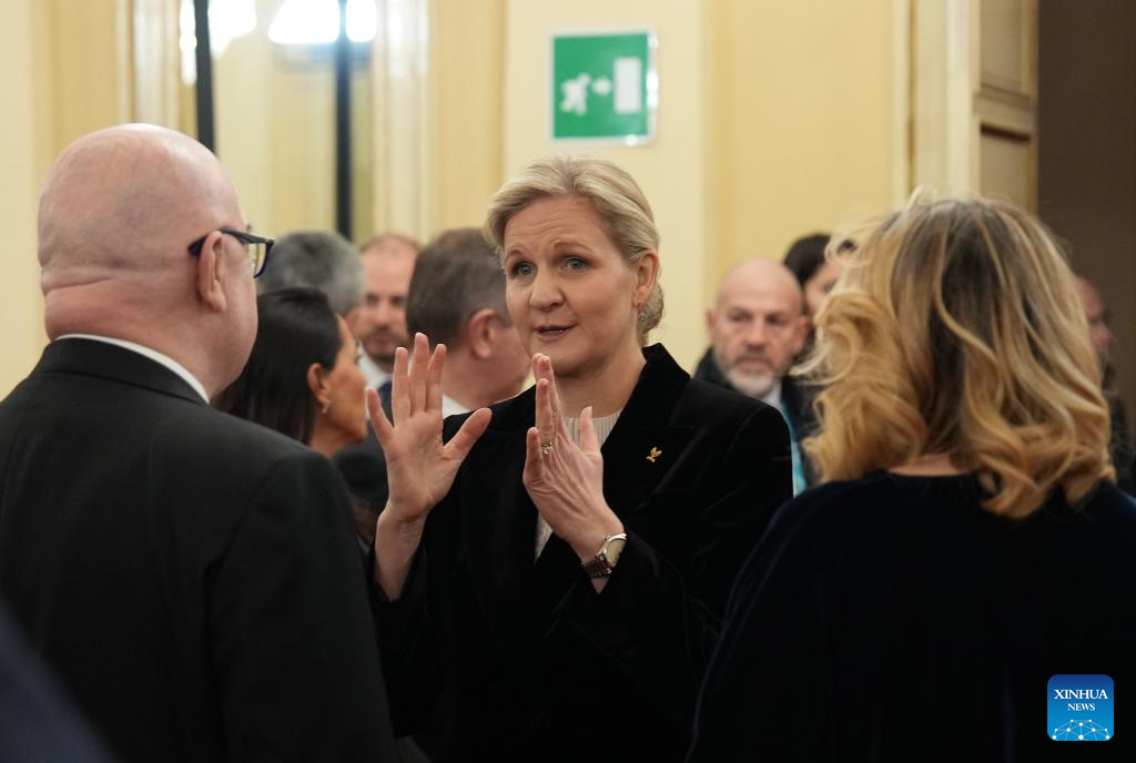 IOC President Kirsty Coventry (C) reacts before the opening ceremony of the 145th IOC Session at La Scala Theatre in Milan, Italy on Feb. 2, 2026. (Xinhua/Sun Fei)