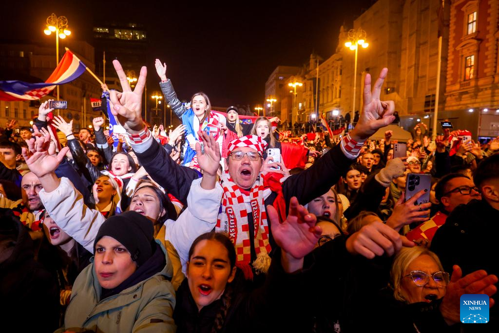 Croatia fans are seen during the ceremonial welcome for the Croatian Handball Team players in Zagreb, Croatia on Feb. 2, 2026. Croatia won the bronze medal at the 2026 EHF European Men's Handball Championship. (Photo by Marko Lukunic/PIXSELL via Xinhua)