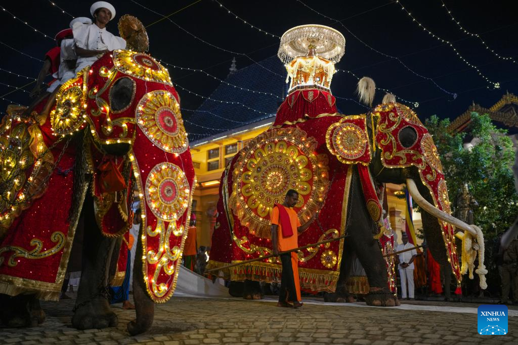 Decorated elephants are seen during the annual Navam Maha Perahera parade in Colombo, Sri Lanka, Feb. 1, 2026. (Photo by Thilina Kaluthotage/Xinhua)