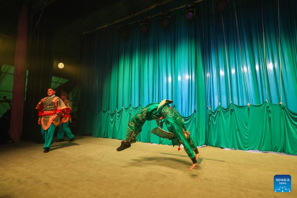 Artists stage a Wuju Opera show in Meixia Village, Jinyun County of Lishui City, east China's Zhejiang Province, Jan. 29, 2026.