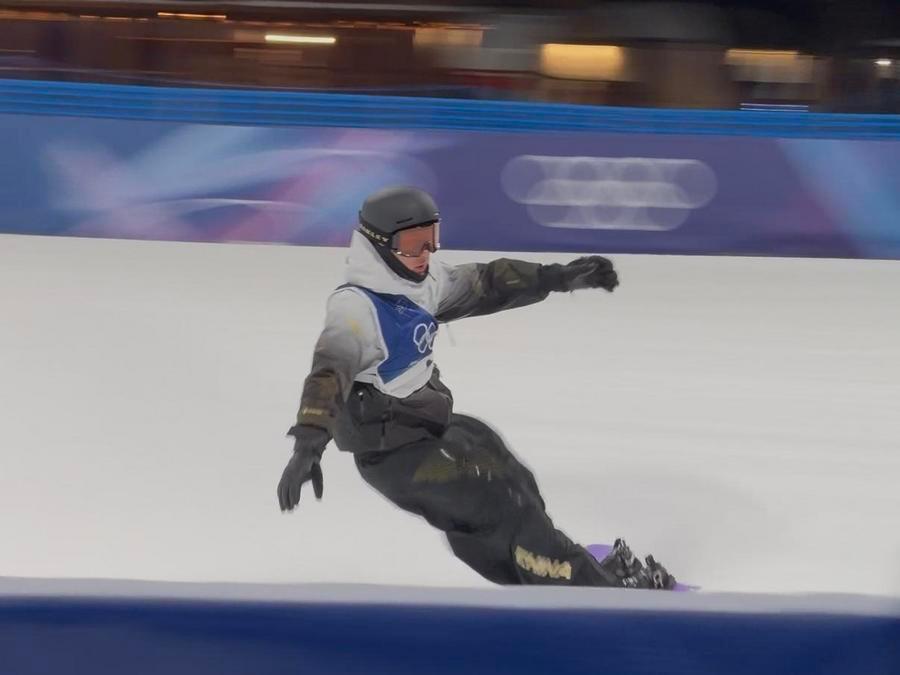 LIVIGNO, Italy, Feb. 2 (Xinhua) -- Defending champion Su Yiming led Chinese snowboarders onto the Olympic big air course in Livigno on Monday, as the venue staged its first official training session ahead of the Milan-Cortina 2026 Olympic Winter Games.