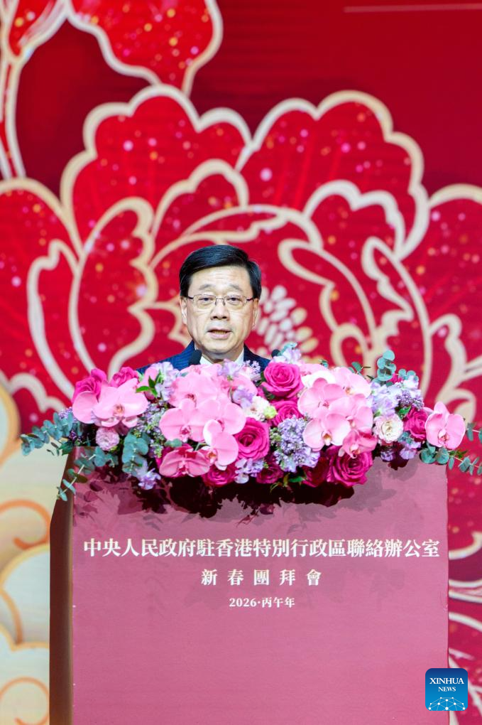 John Lee, chief executive of China's Hong Kong Special Administrative Region (HKSAR), delivers a speech in Hong Kong, south China, Feb. 4, 2026. Hong Kong will draft its first five-year development blueprint as part of efforts to better align with the national 15th Five-Year Plan (2026-2030), John Lee said on Wednesday. (Xinhua/Zhu Wei)