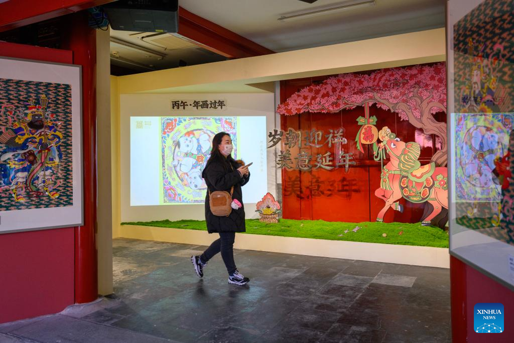 This photo taken on Feb. 4, 2026 shows a Chinese New Year paintings exhibition at the Prince Kung's Palace Museum in Beijing, capital of China. An exhibition displaying more than a hundred exquisite Chinese New Year paintings collected by Prince Kung's Palace Museum opened here on Wednesday. (Xinhua/Jin Liangkuai)