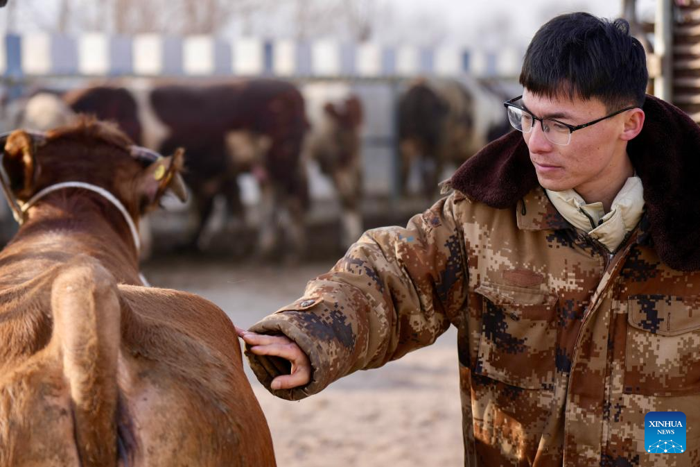 A local broker purchases cattle at Shanjiaji livestock trading market in Xiji County, northwest China's Ningxia Hui Autonomous Region, Feb. 4, 2026. Wednesday marks "Lichun," or the Beginning of Spring, the first of the 24 solar terms on the Chinese lunisolar calendar. It's also a trading day for Shanjiaji livestock trading market.