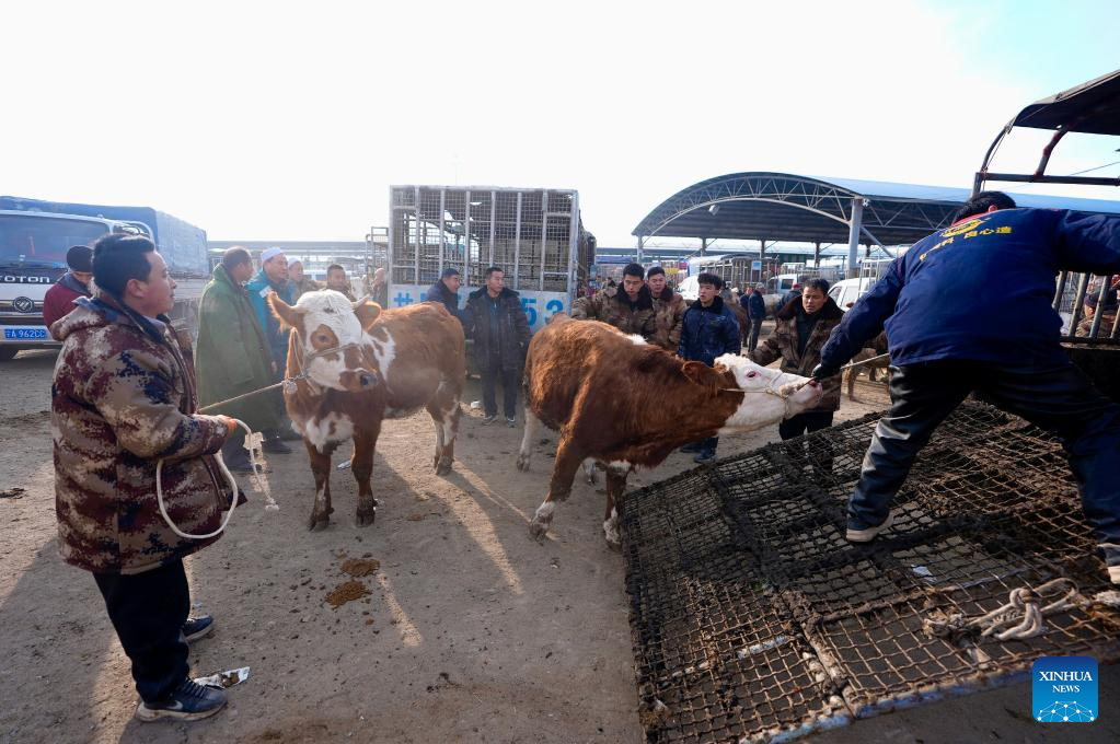 In recent years, the market has become one of the largest village-level livestock trading markets in the area, currently trading over 250,000 heads of beef cattle annually. (Xinhua/Yang Zhisen)