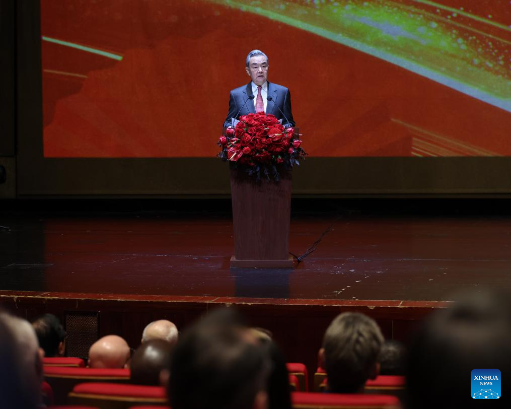 Chinese Foreign Minister Wang Yi, also a member of the Political Bureau of the Communist Party of China Central Committee, attends and addresses the Chinese Foreign Ministry's 2026 New Year reception in Beijing, capital of China, Feb. 5, 2026. Nearly 500 people attended the event, including diplomatic envoys from various countries, representatives of international organizations in China, and representatives of Chinese government departments. (Xinhua/Liu Bin)