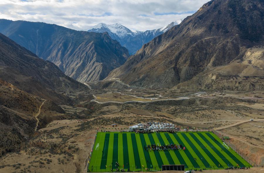 LHASA, Feb. 5 (Xinhua) -- On the rugged eastern Qinghai-Xizang Plateau 3,700 meters above sea level, a modest village of just 5,000 residents boasts more than a dozen football teams. In Marri Town, the annual New Year Cup tournament is a homecoming ritual that draws players back from afar, blending fierce competition with family reunions amid snow-capped peaks.