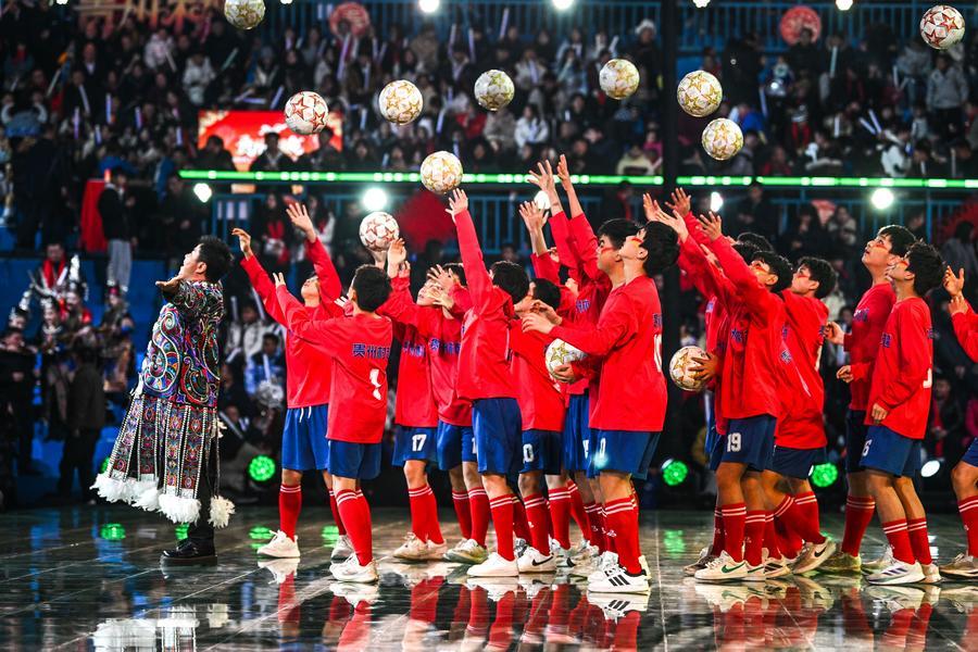 Children perform football skills during a "village gala" in Taipan Village of Taijiang County, southwest China's Guizhou Province, Feb. 3, 2026. (Xinhua/Yang Wenbin)Villagers display folk costumes during a "village gala" in Taipan Village of Taijiang County, southwest China's Guizhou Province, Feb. 3, 2026. (Xinhua/Yang Wenbin)People take part in a long table banquet during a "village gala" in Taipan Village of Taijiang County, southwest China's Guizhou Province, Feb. 3, 2026. (Photo by Yu Tianying/Xinhua)Villagers display folk embroidery works during a "village gala" in Taipan Village of Taijiang County, southwest China's Guizhou Province, Feb. 3, 2026. (Xinhua/Yang Wenbin)Children perform Lusheng Dance during a "village gala" in Taipan Village of Taijiang County, southwest China's Guizhou Province, Feb. 3, 2026. (Xinhua/Yang Wenbin)Villagers perform "Guma basketball game" (basketball game played by elder women) during a "village gala" in Taipan Village of Taijiang County, southwest China's Guizhou Province, Feb. 3, 2026. (Xinhua/Yang Wenbin)People wait to watch a "village gala" in Taipan Village of Taijiang County, southwest China's Guizhou Province, Feb. 3, 2026. (Xinhua/Yang Wenbin)■