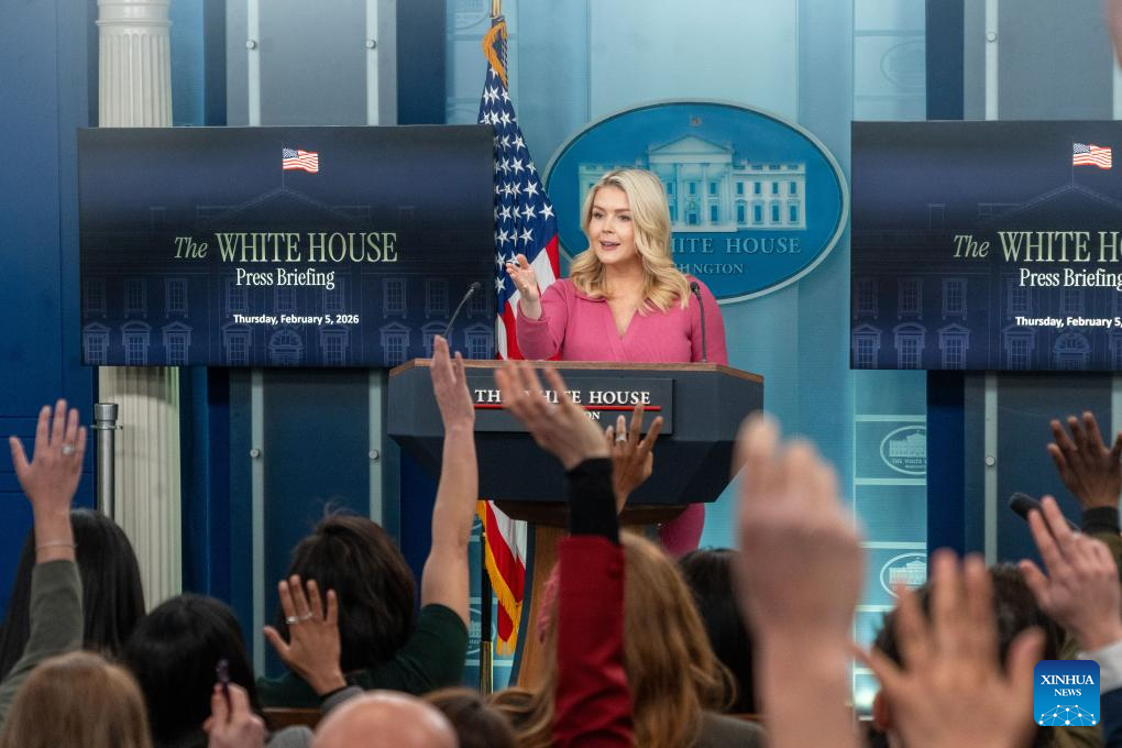 White House Press Secretary Karoline Leavitt gestures during a press briefing at the White House in Washington, D.C., the United States, on Feb. 5, 2026. (Photo by Li Yuanqing/Xinhua)