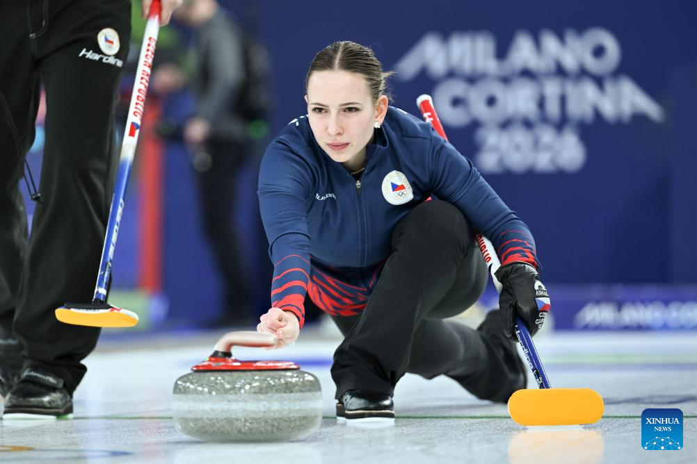 Julie Zelingrova of the Czech Republic competes during the curling mixed doubles round robin session 4 match between the Czech Republic and Britain of the 2026 Milan-Cortina Winter Olympics in Cortina D'Ampezzo, Italy, Feb. 5, 2026. (Xinhua/Lian Yi)