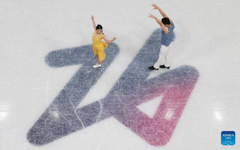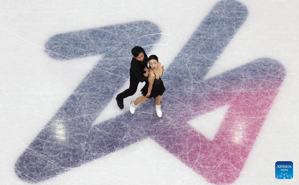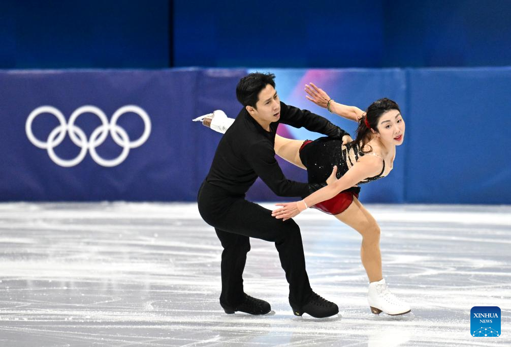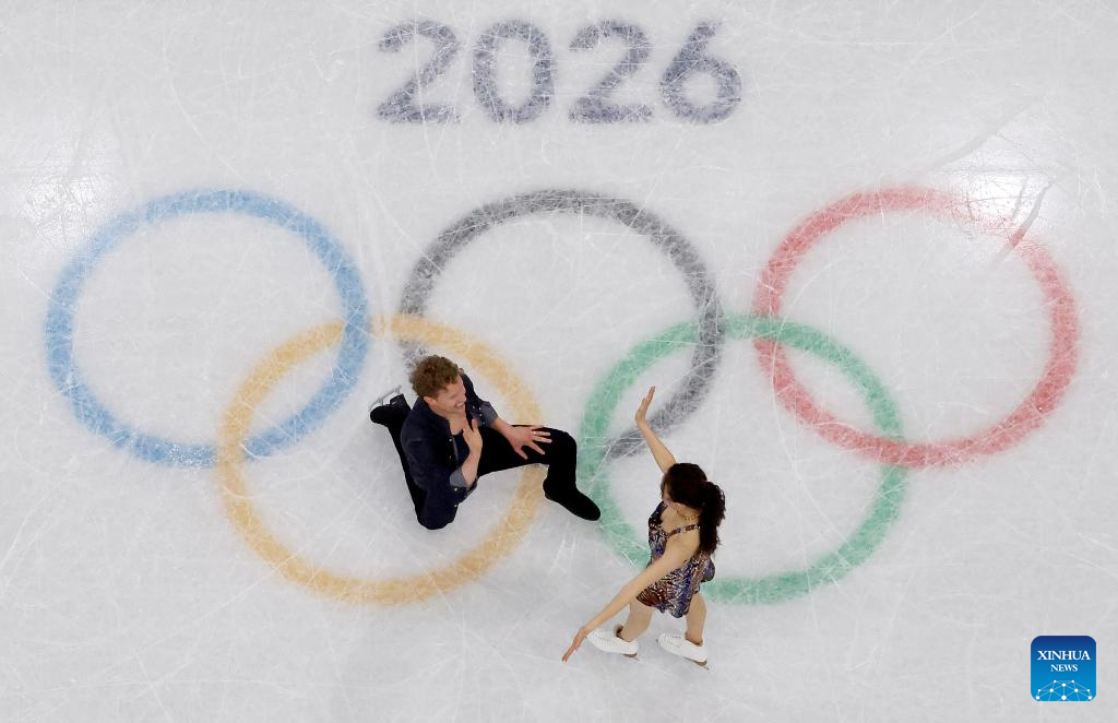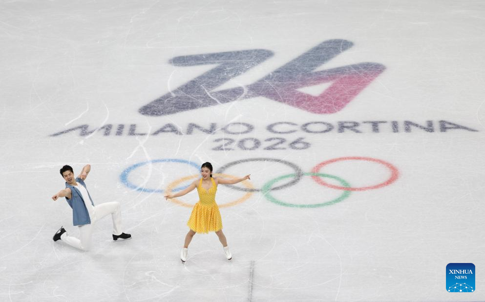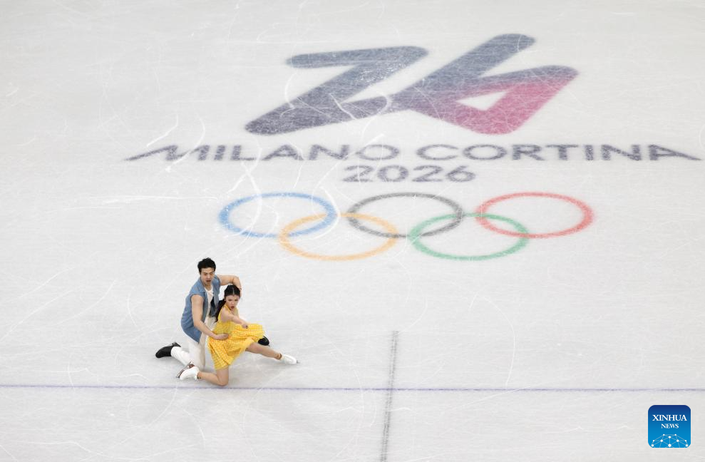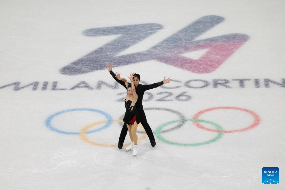 Wang Shiyue (L)/Liu Xinyu of China perform during the figure skating team event ice dance rhythm dance of the Milan-Cortina 2026 Olympic Winter Games in Milan, Italy, Feb. 6, 2026. (Xinhua/Li Ming)