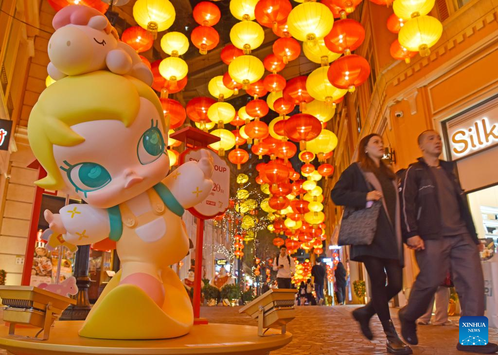 People walk along Lee Tung Street in Hong Kong, south China, on Feb. 5, 2026. Lanterns are hoisted to mark the upcoming Chinese New Year. (Xinhua/Chen Duo)