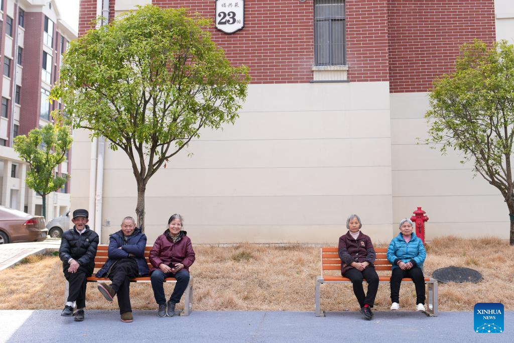 Senior residents have a rest at a resettlement site in Xingning Town, Zixing City, central China's Hunan Province, Feb. 4, 2026. In July 2024, rainstorms unleashed by Typhoon Gaemi hit Zixing City, affecting about 128,000 people and damaging 23,000 houses.