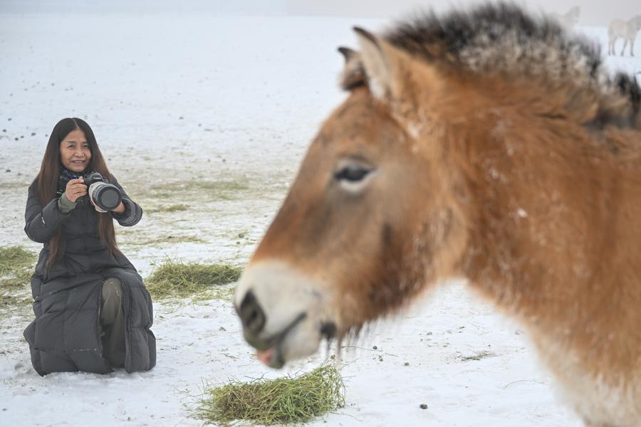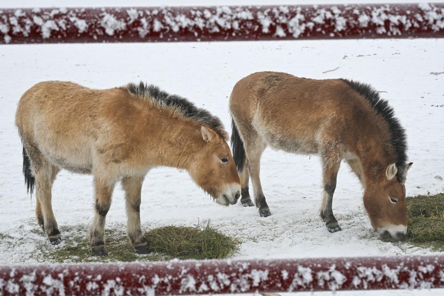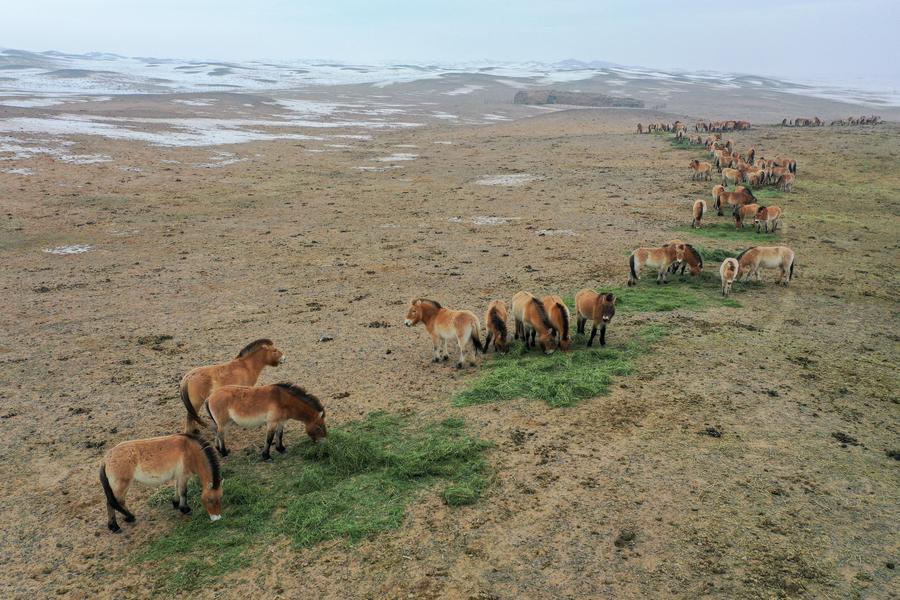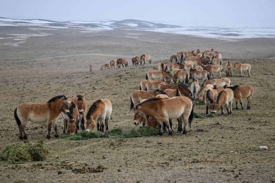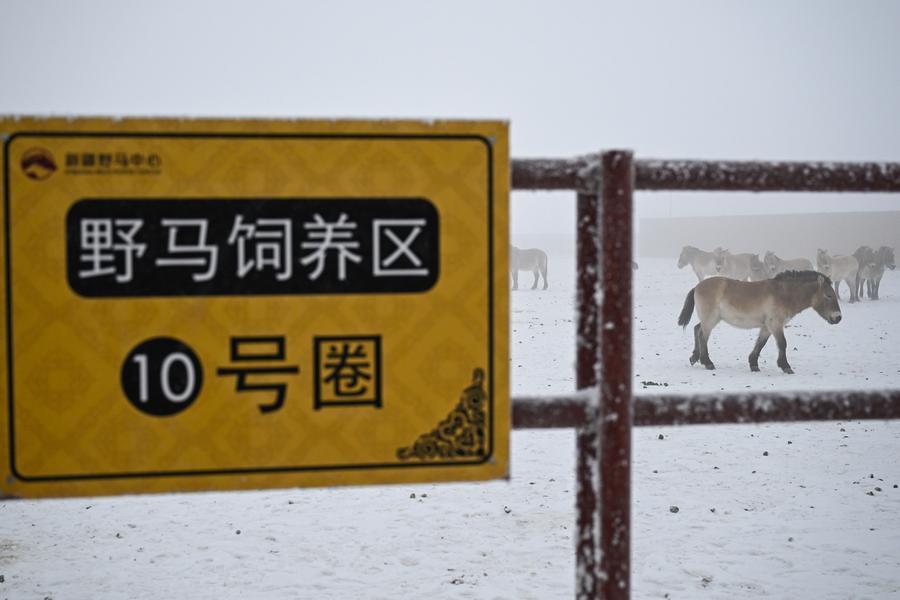 EcoChina | Guardians walk extra miles to ensure safe winter for Przewalski's horses in NW China's Xinjiang-Xinhua