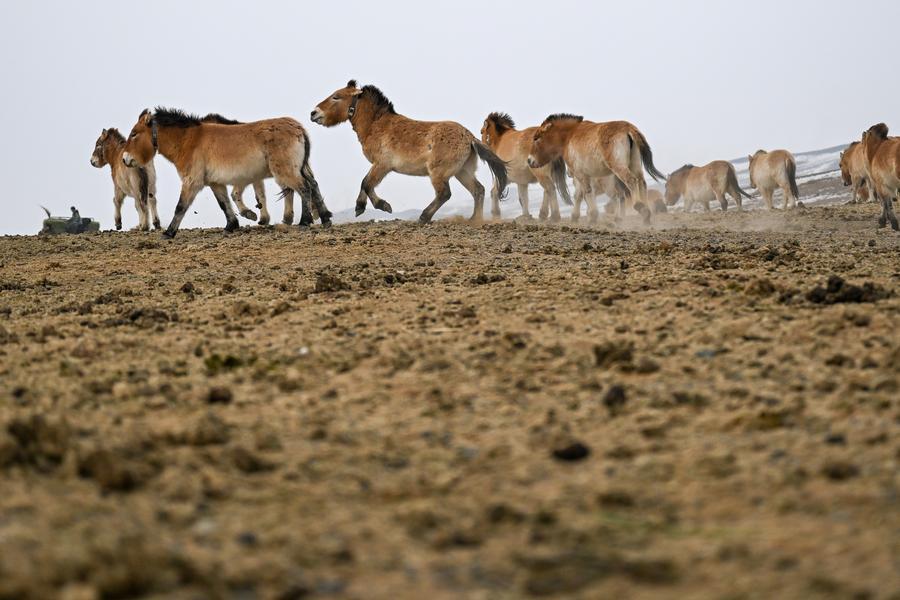 This photo taken on Feb. 4, 2026 shows Przewalski's horses at the Karamaile Mountain Nature Reserve, northwest China's Xinjiang Uygur Autonomous Region. (Xinhua/Ding Lei)An aerial drone photo taken on Feb. 4, 2026 shows Przewalski's horses at the Karamaile Mountain Nature Reserve, northwest China's Xinjiang Uygur Autonomous Region. (Xinhua/Ding Lei)This photo taken on Feb. 4, 2026 shows Przewalski's horses at the Karamaile Mountain Nature Reserve, northwest China's Xinjiang Uygur Autonomous Region.(Xinhua/Ding Lei)An aerial drone photo taken on Feb. 4, 2026 shows Przewalski's horses at the Karamaile Mountain Nature Reserve, northwest China's Xinjiang Uygur Autonomous Region. (Xinhua/Ding Lei)Staff members of a Przewalski's horse monitoring station take infrared cameras at a water source of the Karamaile Mountain Nature Reserve, northwest China's Xinjiang Uygur Autonomous Region, Feb. 4, 2026. (Xinhua/Ding Lei)Staff members of a Przewalski's horse monitoring station search for Przewalski's horses at the Karamaile Mountain Nature Reserve, northwest China's Xinjiang Uygur Autonomous Region, Feb. 4, 2026. (Xinhua/Ding Lei)This photo taken on Feb. 6, 2026 shows Przewalski's horses at the Karamaile Mountain Nature Reserve, northwest China's Xinjiang Uygur Autonomous Region. (Xinhua/Ding Lei)A drone photo taken on Feb. 4, 2026 shows staff members of a Przewalski's horse monitoring station searching for Przewalski's horses at the Karamaile Mountain Nature Reserve, northwest China's Xinjiang Uygur Autonomous Region. (Xinhua/Ding Lei)Staff members of a Przewalski's horse monitoring station check the vegetation condition at the Karamaile Mountain Nature Reserve, northwest China's Xinjiang Uygur Autonomous Region, Feb. 4, 2026. (Xinhua/Ding Lei)This photo taken on Feb. 6, 2026 shows Przewalski's horses at the Karamaile Mountain Nature Reserve, northwest China's Xinjiang Uygur Autonomous Region. (Xinhua/Ding Lei)Staff members of a Przewalski's horse monitoring station plan the patrol route at the Karamaile Mountain Nature Reserve, northwest China's Xinjiang Uygur Autonomous Region, Feb. 4, 2026. (Xinhua/Ding Lei)A researcher takes photos of a Przewalski's horse at the Karamaile Mountain Nature Reserve, northwest China's Xinjiang Uygur Autonomous Region, Feb. 6, 2026.(Xinhua/Ding Lei)This photo taken on Feb. 6, 2026 shows Przewalski's horses at the Karamaile Mountain Nature Reserve, northwest China's Xinjiang Uygur Autonomous Region. (Xinhua/Ding Lei)Staff members drive to search for Przewalski's horses at the Karamaile Mountain Nature Reserve, northwest China's Xinjiang Uygur Autonomous Region, Feb. 4, 2026. (Xinhua/Ding Lei)■