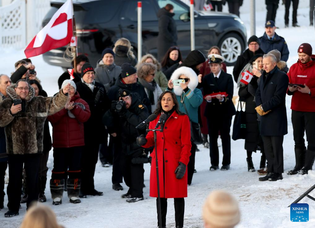 Canada's Foreign Minister Anita Anand (C) addresses the opening ceremony of Canada's new consulate in Nuuk, the capital of Greenland, Denmark, Feb. 6, 2026. On Friday, France and Canada each opened a consulate in Nuuk. (Xinhua/Li Ying)